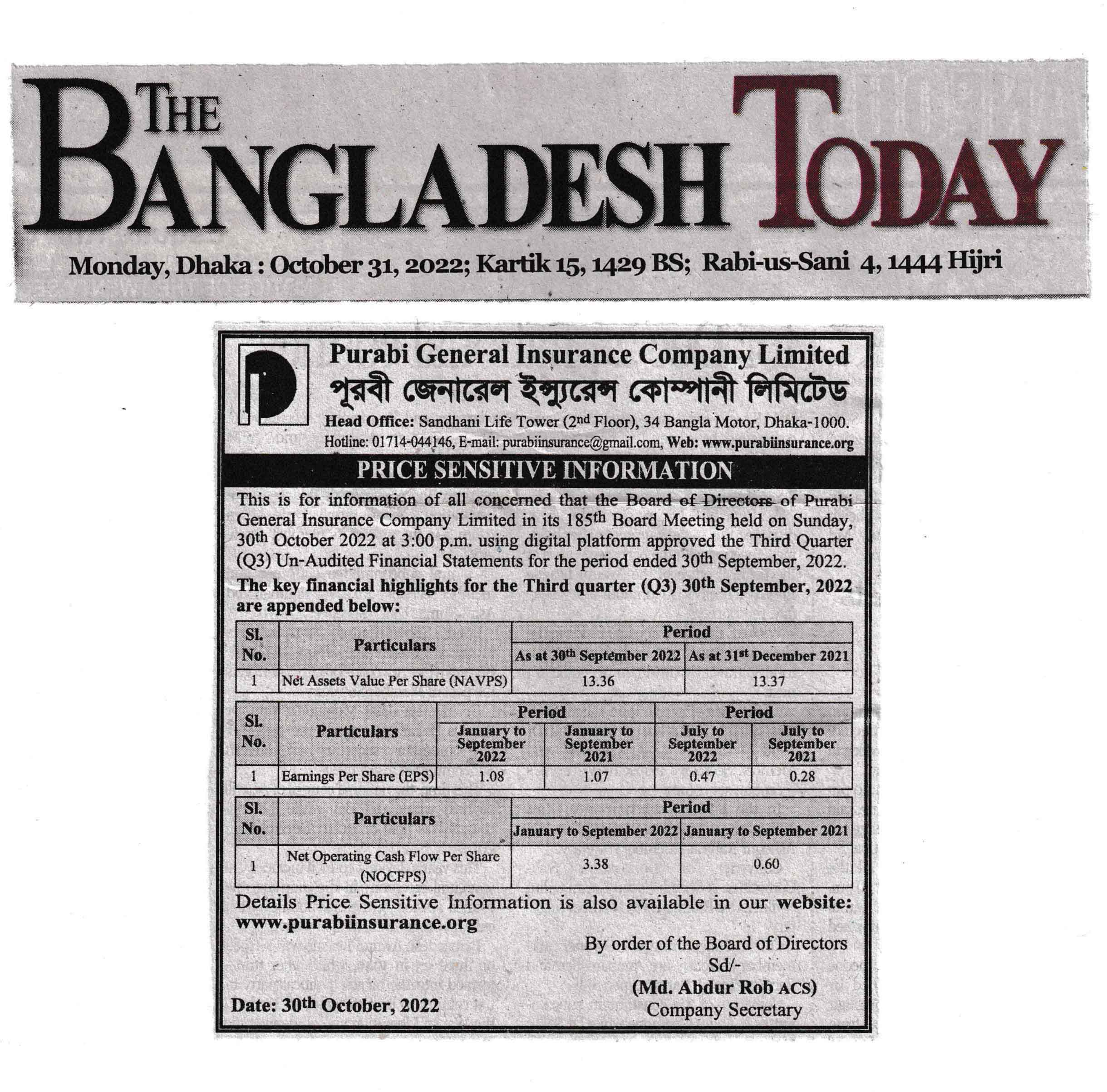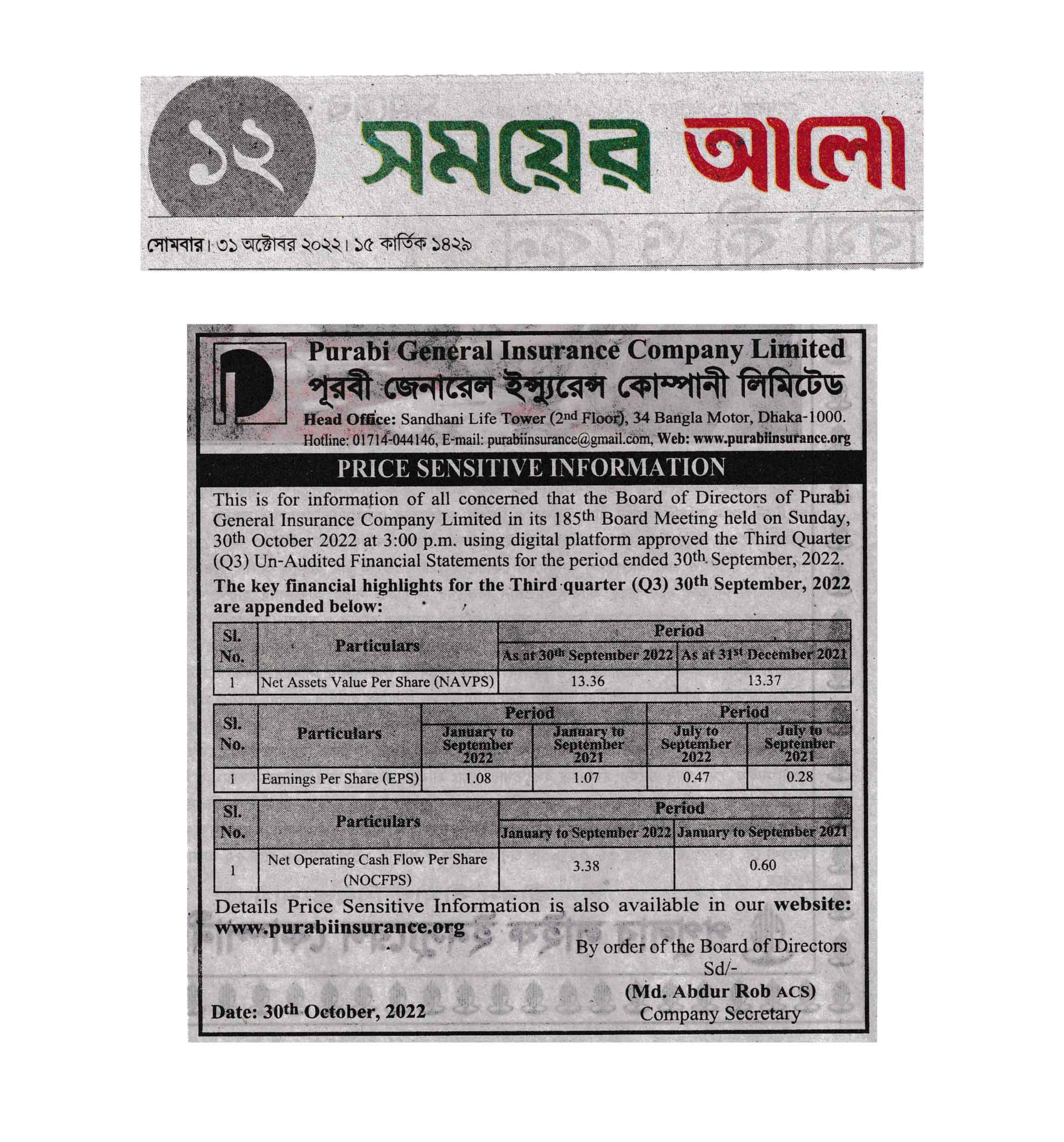 3rd Quarter-Price Sensitive Information (2022)-1